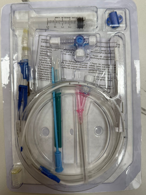 The Novocent-Pro Trio Triple Lumen Central Venous Catheter (CVC) Kit (Ref: 15565) is a sterile medical set used for accessing large central veins to administer multiple therapies simultaneously. This kit is designed for intensive care and surgical settings to provide long-term vascular access.