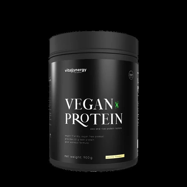 Vanilla flavored vegan protein powder enriched with sweeteners, containing 73% protein. The product is aspartame free and provides 22 g lean protein per serving.