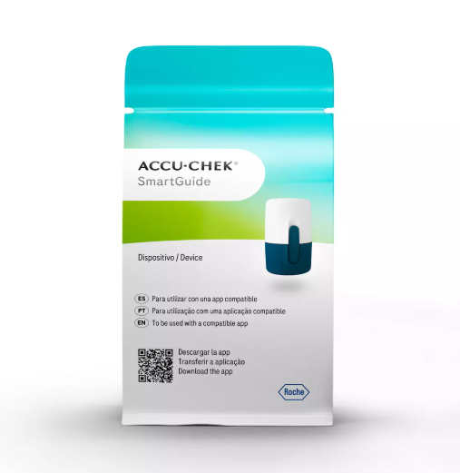 The Accu-Chek SmartGuide is an AI-enabled Continuous Glucose Monitoring (CGM) system that provides real-time glucose readings every 5 minutes and predictive alerts for future glucose levels.