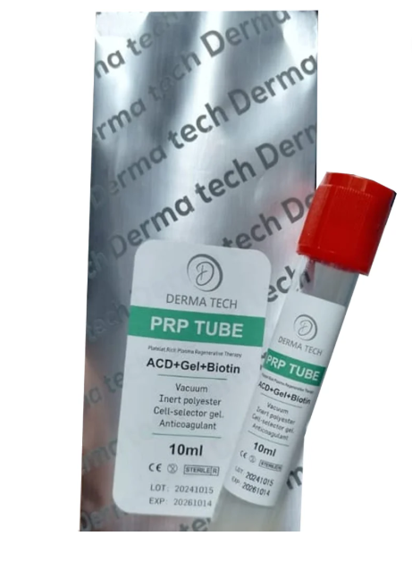 Type: The Dermatech PRP tube is a PRP preparation kit that uses a gel separator and an anticoagulant (ACD Solution A - Anticoagulant Citrate Dextrose) to ensure effective and consistent separation of platelet-rich plasma from whole blood.