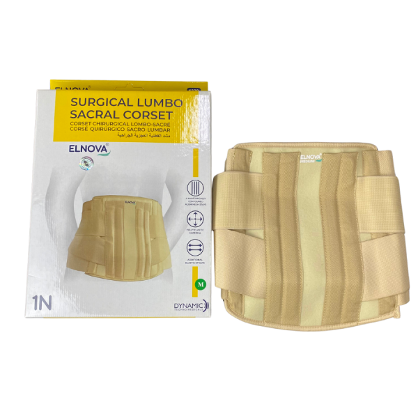 DYNA ELNOVA SURGICAL LUMBO SACRAL CORSET is an orthopedic support designed to provide compression and stabilization to the lower back and sacral region, primarily for managing chronic low back pain and supporting post-operative.