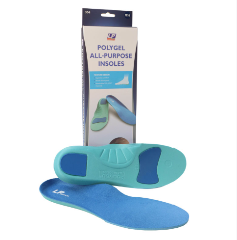 The LP Polygel All-Purpose Insole (304) is a shock-absorbing insole designed to provide comfort and reduce stress during athletic and casual activities.