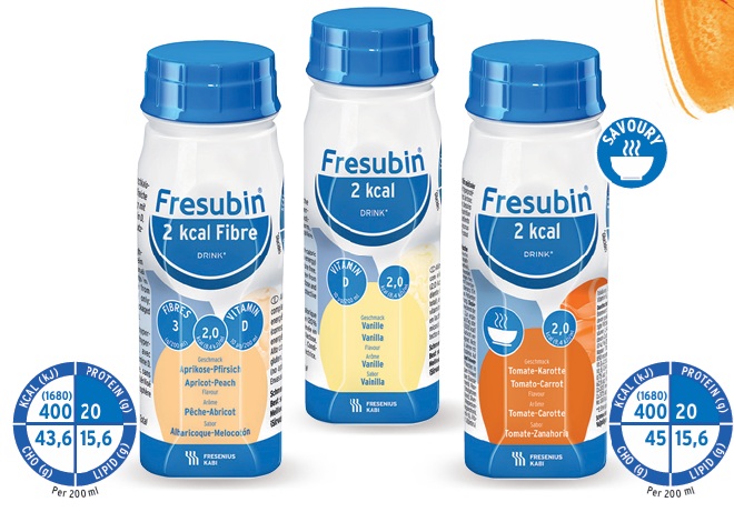 Food for special medical purposes: rnNutritionally complete, high-caloric (2.0 kcal / ml), high protein (20 energy) oral rnnutritional supplement, fibre free (Fresubin 2 kcal DRINK) / with fibre (Fresubin rn2 kcal Fibre DRINK). High in vitamin D. Clinically free from lactose, gluten free. rnContains traces of caffeine (0.65 mg / 100 ml)b. For the dietary management of rnpatients with or at risk of disease-related malnutrition in parti cular for patients with rnincreased energy and protein needs or fluid restrictions.