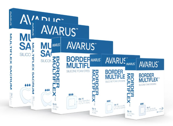 AVARUS MULTIFLEX is flexible 5 layered soft silicone adhesive bordered foam dressing