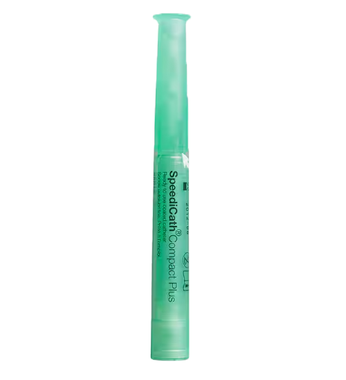 The SpeediCath Compact Female Plus (Item 28814) is a 14 French (CH14) hydrophilic intermittent catheter designed by Coloplast for discreet, one-time use. It features an award-winning design about the size of a lipstick, allowing for portable and private self-catheterization.