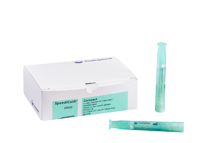 The Coloplast SpeediCath Compact Female (28582) is a sterile, single-use intermittent catheter designed specifically for the female anatomy. It is known for its discreet, lipstick-sized packaging and ready-to-use hydrophilic coating.