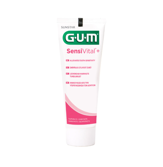 The good news is that GUM SensiVital + Toothpaste offers quick and long-lasting relief. It plugs open little openings, adding a protective layer of copolymer, while protecting nerve endings. A tailored anti-plaque system also cares for receding gums.