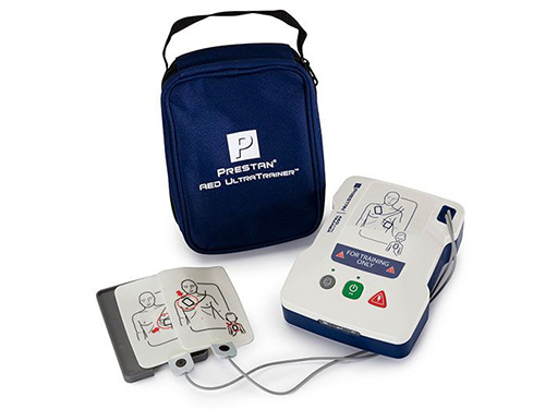 Part # PP-AEDUT-102 The PRESTAN AED UltraTrainer is our most compact, lightweight AED trainer solution with full customization options to accommodate any classroom training situation. This AED trainer resembles a live training experience like no other on the market. For use with patented PRESTAN Pad Sensing System.