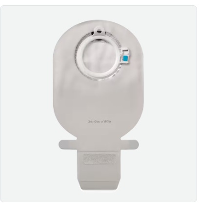 - Unlike other ostomy products, SenSura Mio is made of a material that we otherwise wear on the body, i.e. textile material. It is soft and comfortable against the skin, it provides low friction against clothes and it does not feel wet after taking a shower. In addition, the textile material makes the ostomy pouch look more like a piece of clothing than a medical device