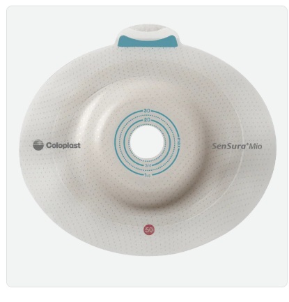 The SenSura Mio Convex 2-piece Click baseplate featuring an adaptive convex shell and an elastic adhesive is separate from the pouch, so the pouch can be changed without changing the baseplate. The pouch is coupled to the baseplate by means of the Click coupling, which gives an audible “click” when the pouch is securely locked to the baseplate. SenSura Mio Convex Click is available in a broad range of baseplates: Light and Deep convex variants in various pre-cut or hole sizes which can be customized, with pouches in a variety of sizes available in transparent, or with inspection window, and with coupling systems of 40, 50, 60 or 70 mm in diameter.